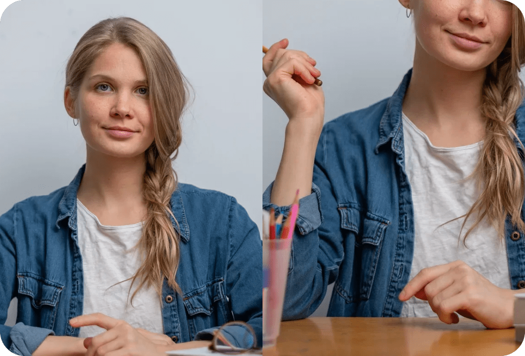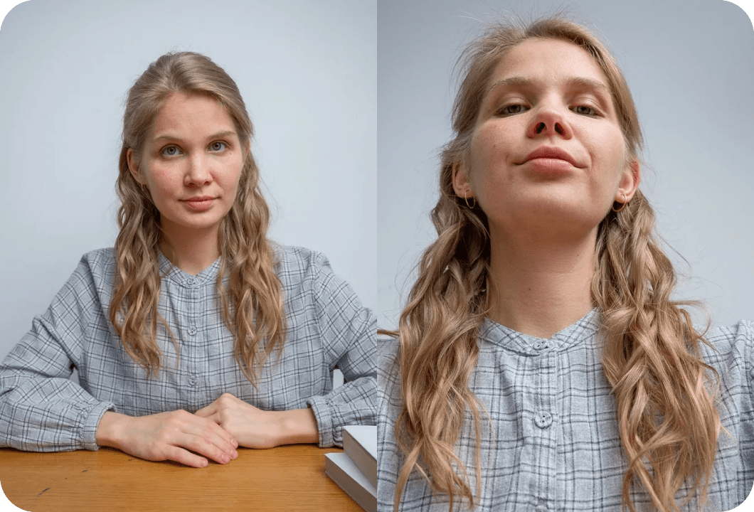 Смотрите ровно на камеру. Вы не должны смотреть сверху или снизу